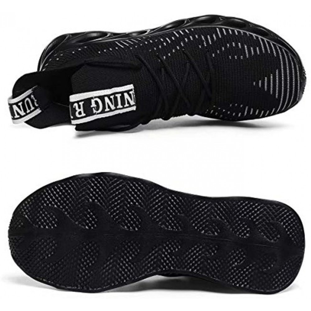 Men's Running Shoes Breathable Knit Slip On Sneakers Lightweight Athletic Casual Sports Shoes High Top All Black