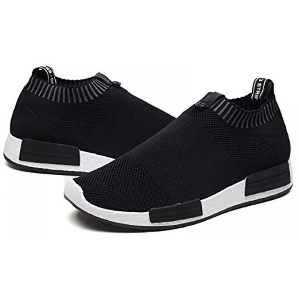 Men's Running Shoes Breathable Knit Slip On Sneakers Lightweight Athletic Shoes Casual Sports Shoes All Black